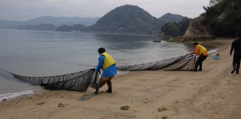 がんばって地曳網を引きました。